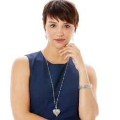 Inspired by antique lace, this silver bangle plants tiny flowers in the filigree garden. Hinged for easy on-off.