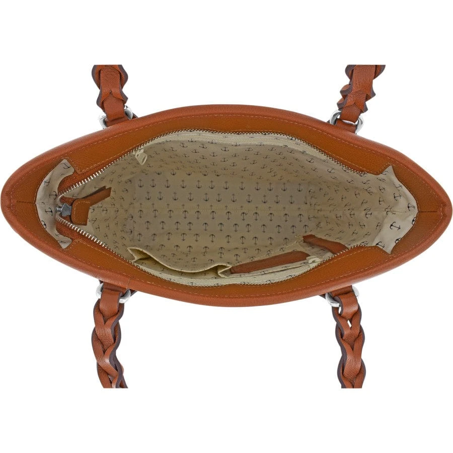 Our designer Lisa Spayd-Sendre who is always inspired by nautical style dipped her brush into a sea of marine colors and drew them as a one-of-a-kind striped pattern for this timeless tote. The leather anchor is such a refreshing touch!