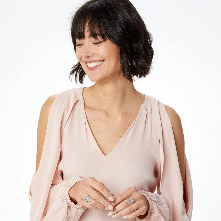 Match your favorite Christo Cuff bracelet with a metalwork ring echoing the same design! (Sorry, not compatible with leather inserts.)