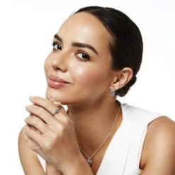 Here, we’ve distilled our Illumina Collection motif down to its essence, to a solitaire fine quality crystal framed by pave, for a simple delicate look.