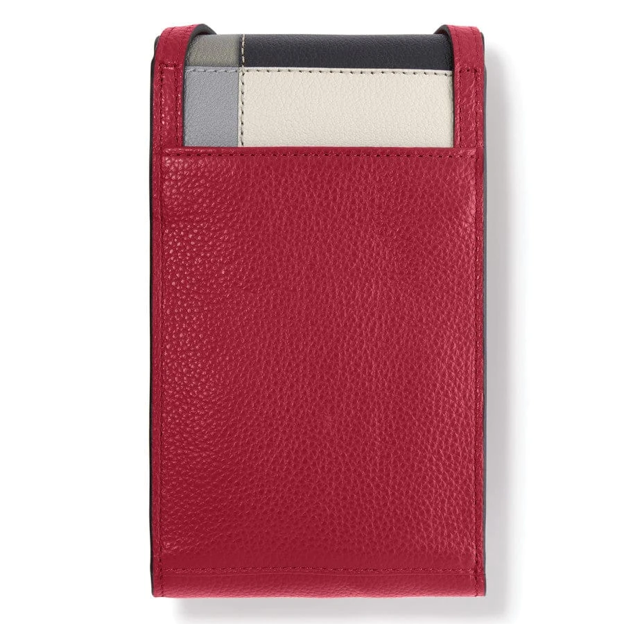 Get an instant fashion smile with this artful phone organizer that celebrates everything happy and colorful about 1970s cubist graphics – it will hold your phone and other essentials, too – hands-free!