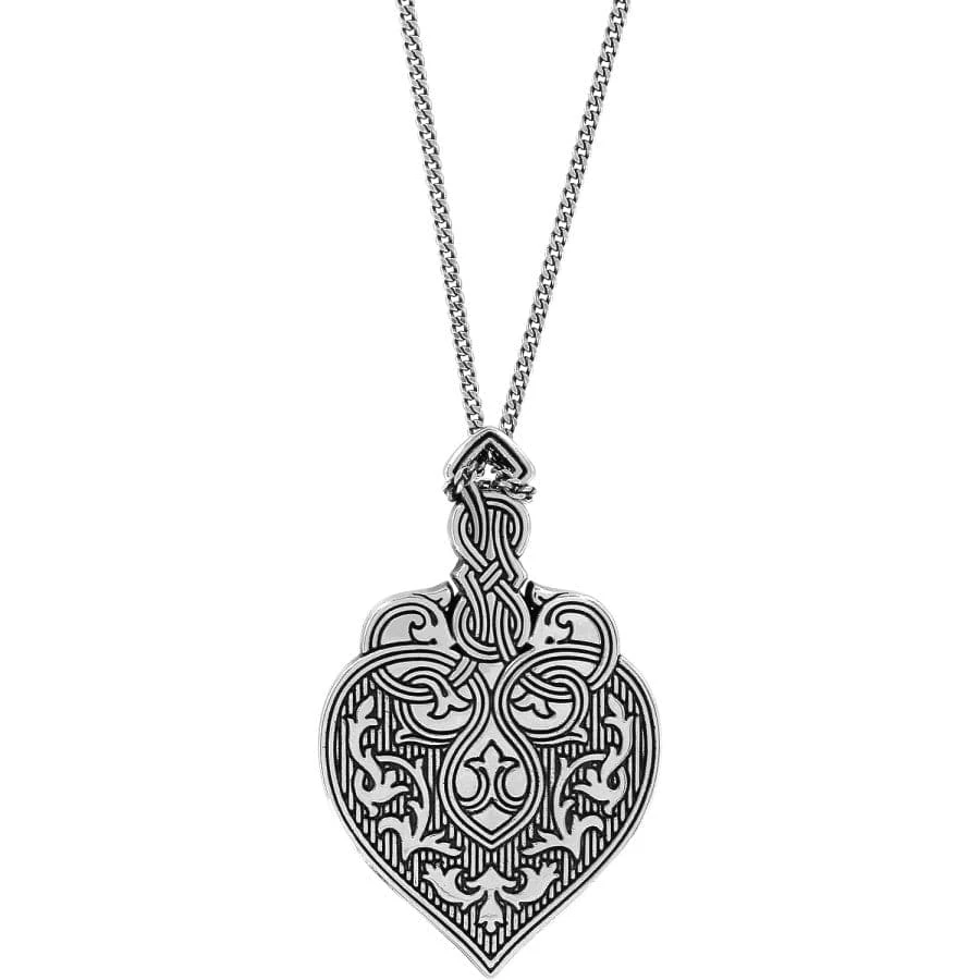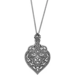 Looking like a royal brocade, our designer combined etched silver and hand-painted enamel for an almost filigreed effect. This heart pendant is stunning!